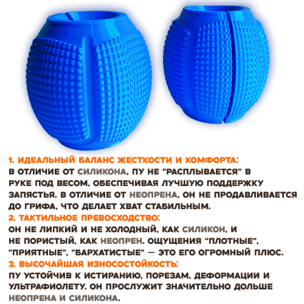 брусьев, но и для рукоятей гантелей. Это позволяет эффективно