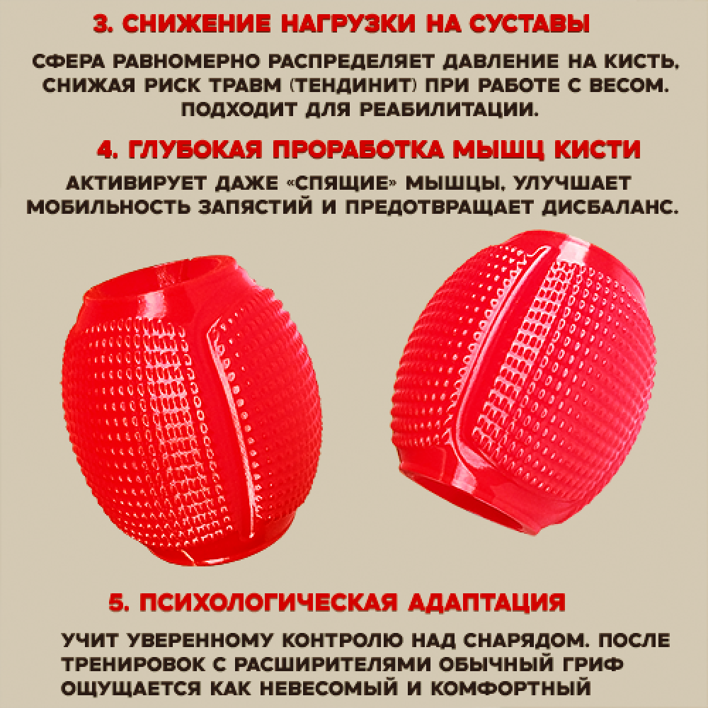 Сферические расширители хвата — это простое и эффективное решение для спортсменов, которые ценят комфорт, безопасность и хотят улучшить свои результаты без риска травм.