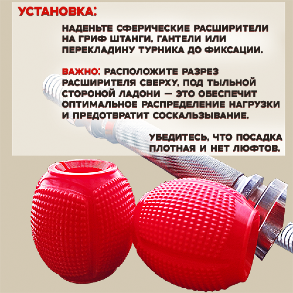 расширители хвата, сферические расширители, насадки на гриф, накладки на штангу, полиуретановые расширители, красные расширители, расширители 30 мм, аксессуары для штанги, аксессуары для гантелей, усиление хвата, тренировка хвата, защита кистей, защита от мозолей, хват для становой тяги, спорттовары, фитнес аксессуары, тренажерный зал, пауэрлифтинг, кроссфит, тяжелая атлетика