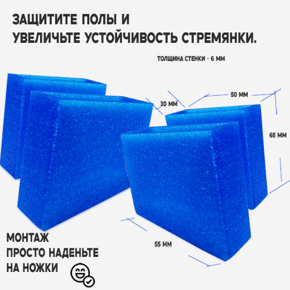 Хватит переживать за пол и устойчивость стремянки! Набор противоскользящих башмаков-накладок на но..