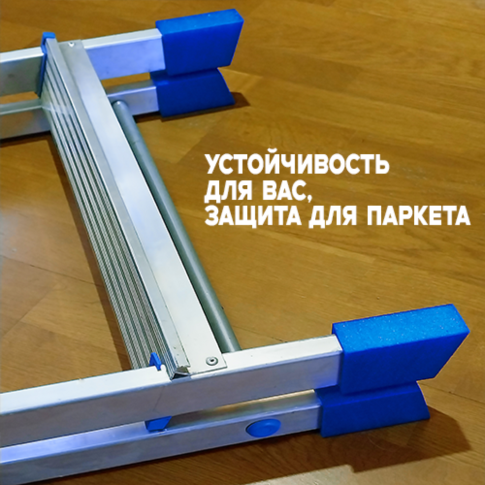 ✅ Полная защита покрытий: Эластичные полиуретановые башмаки для алюминиевой и металлической стремянки надежно защищают ламинат, паркет, линолеум, плитку и ковровое покрытие от царапин и повреждений.