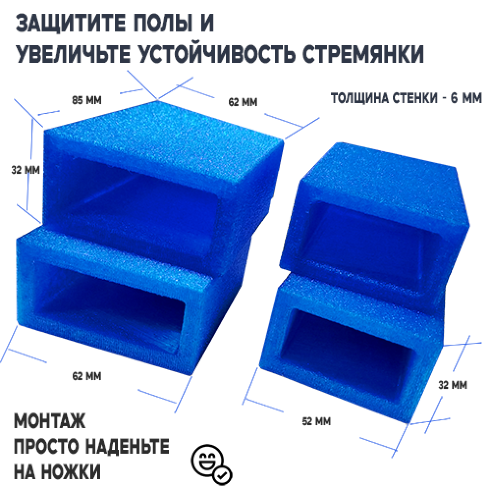 ✅ Долговечность и комфорт: Накладки на ножки лестницы стремянки гасят шум, берегут металл от износа, не дубеют на морозе и продлевают срок службы инструмента.