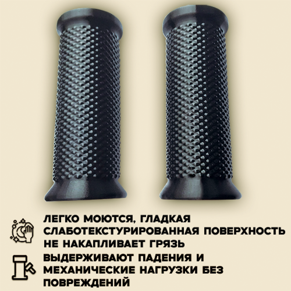 Главное преимуществоКомфорт и надежный хват для любой техники. Пара прочных рукояток из полиурет..